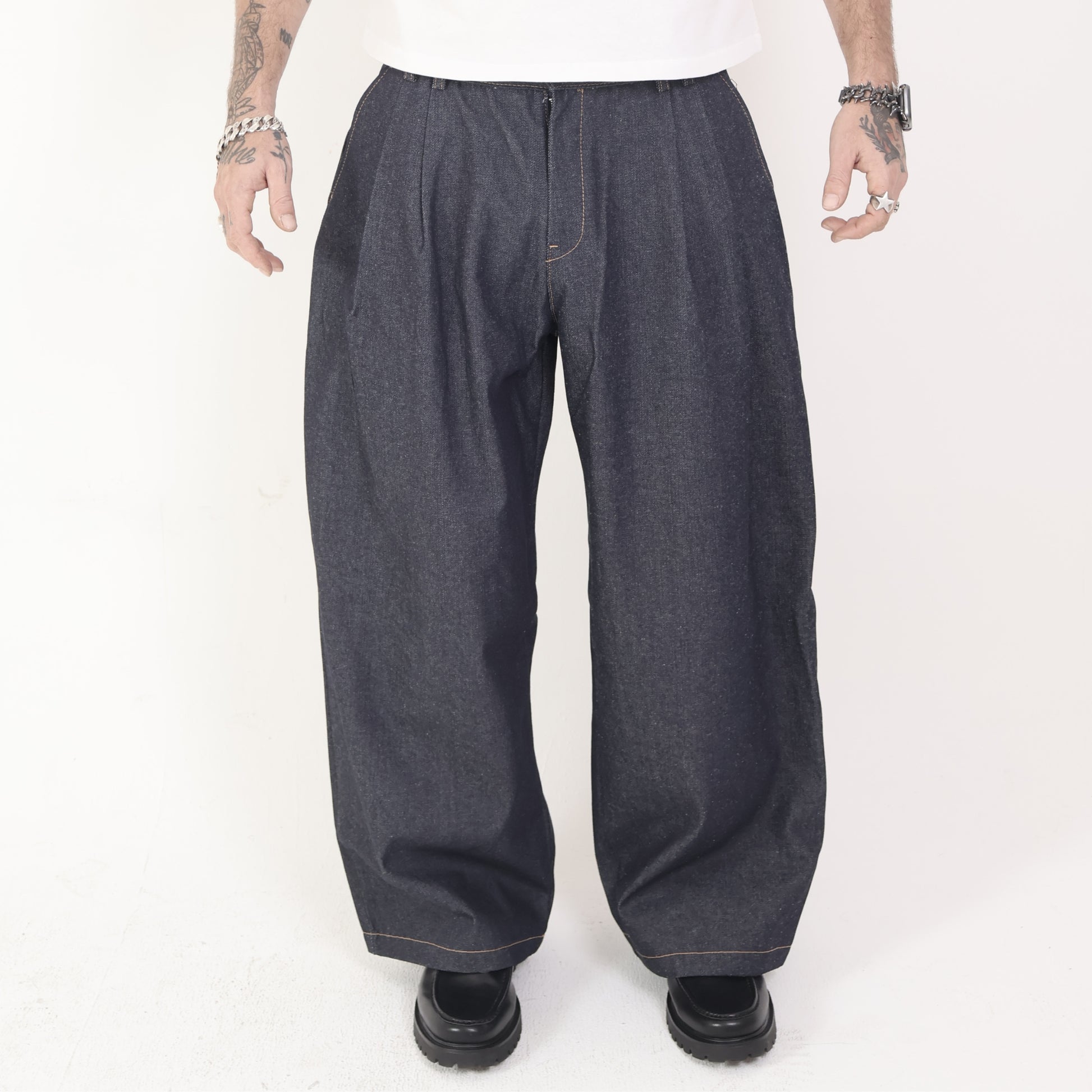 HOB pleated raw denim in Indigo